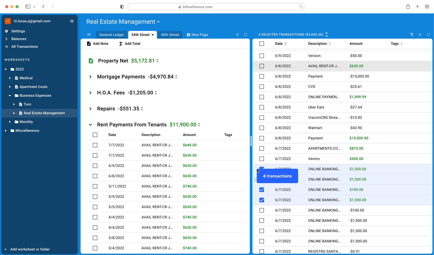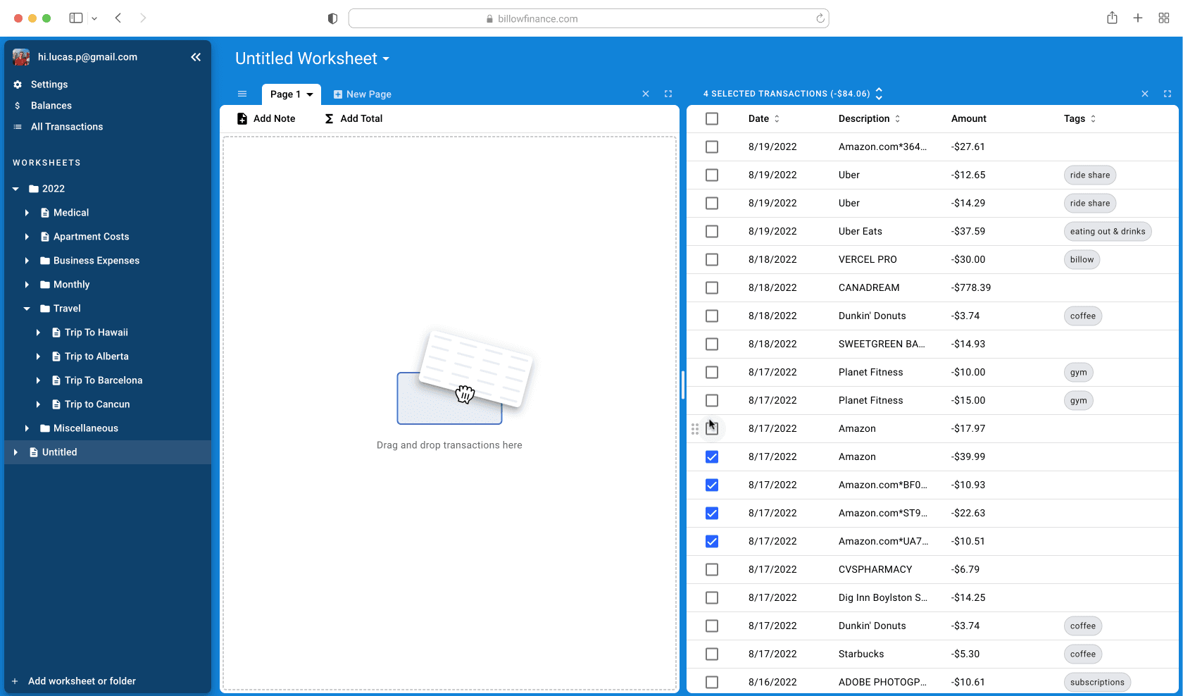 Everything! Drag and drop your transactions into worksheets to get organized your way. Billow is flexible!